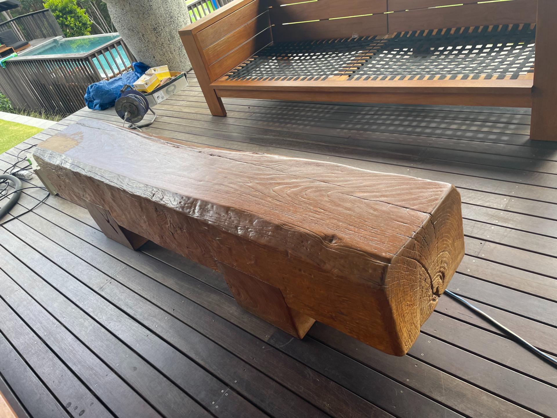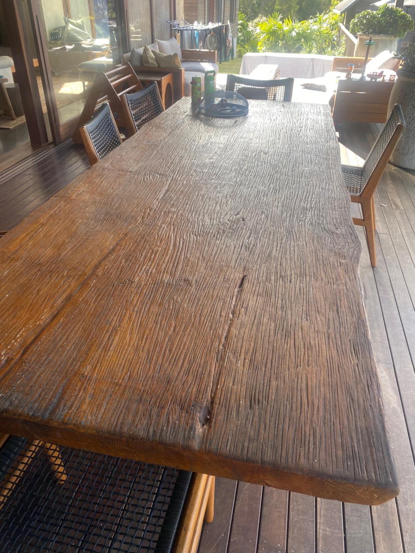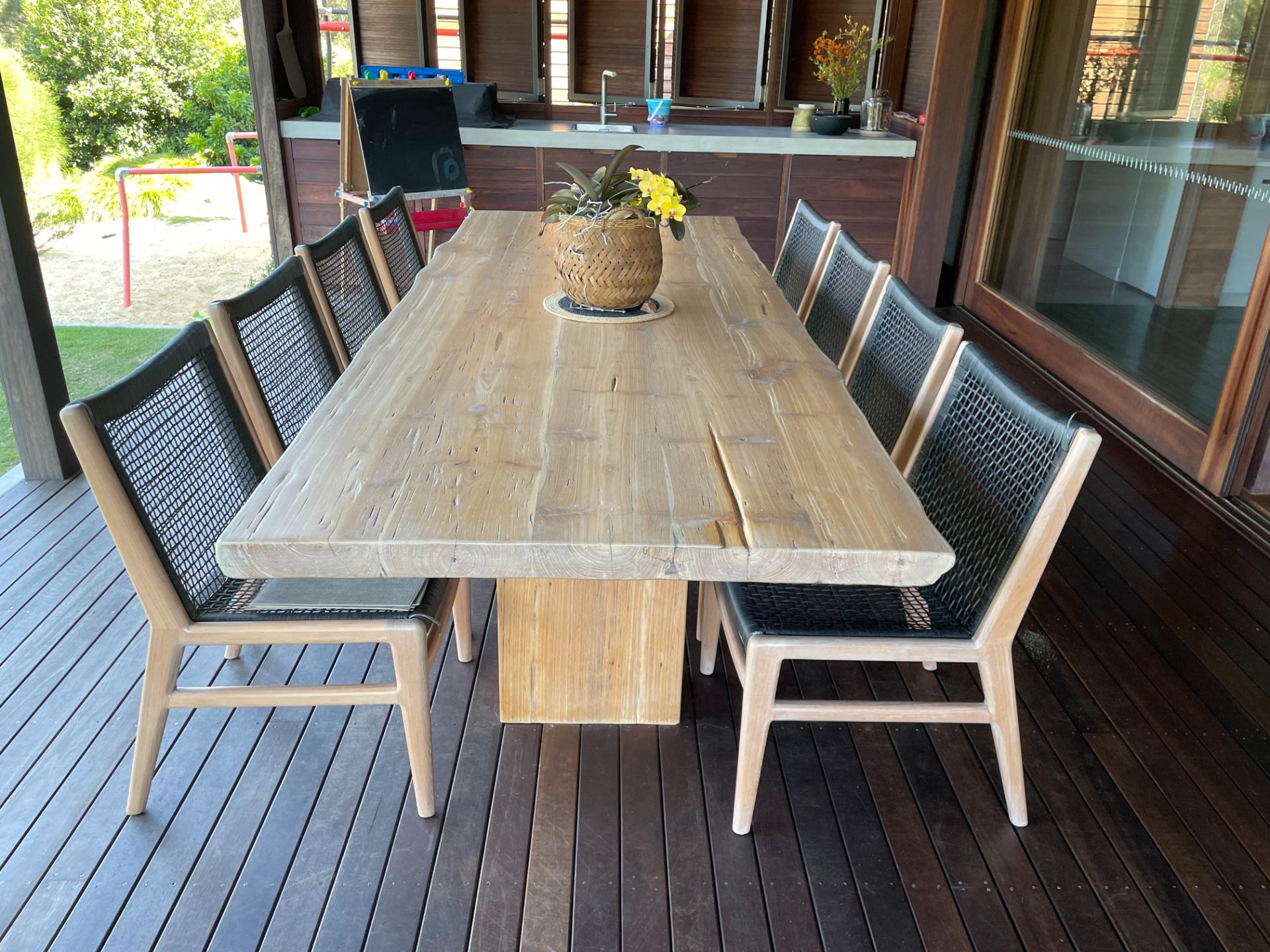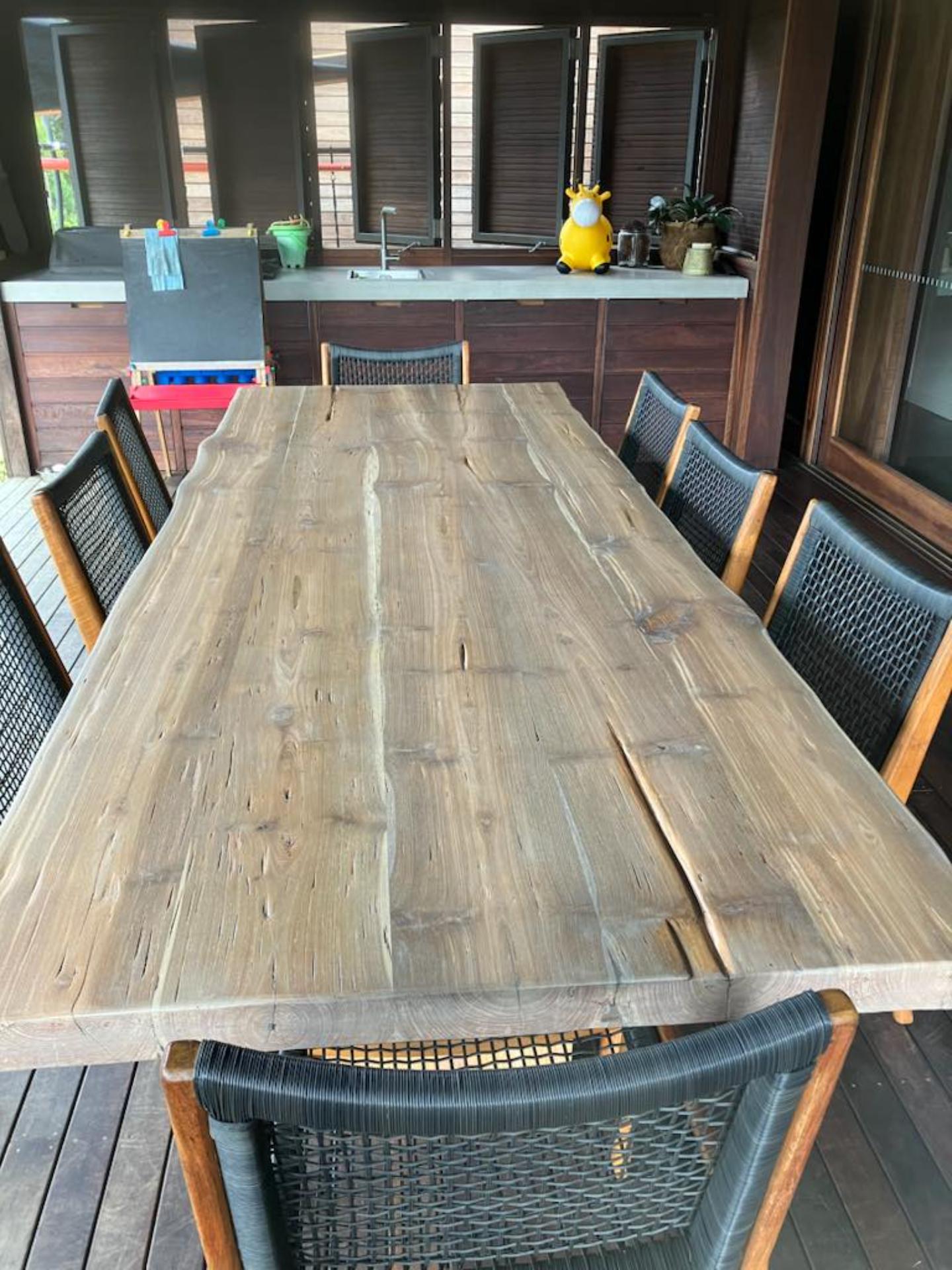 This custom live edge outdoor set is a striking piece that brings the natural beauty of wood into any varandah.